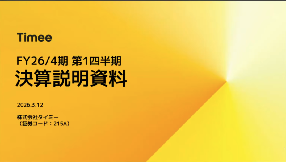 スポットワークサービス大手のタイミーが2026年3月12日に発表した2026年4月期第1四半期決算(2025年11月〜2026年1月)において、同社はAIによる事業への影響について公式見解を示した。