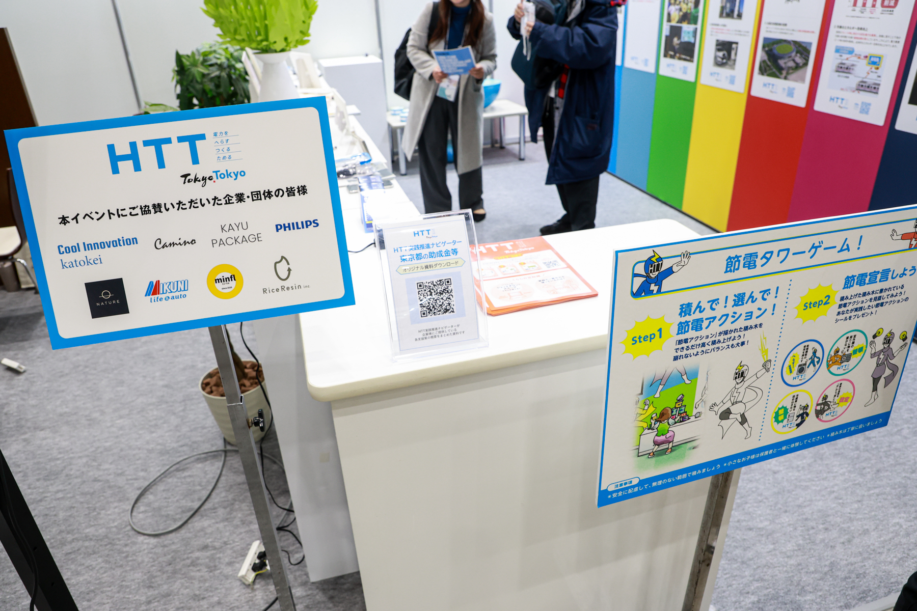 東京都の同ブースでは、私たちの身の回りにあふれる”HTT”に出会える展示コーナーや、子どもから大人まで楽しめる体験型コンテンツなど、日常生活で実践したくなる”HTTアクション”を学ぶことができる内容となっていた。また、省エネなどに関する都の支援策を案内する「HTT実践推進ナビゲーター」による相談窓口ブースも用意されていた。